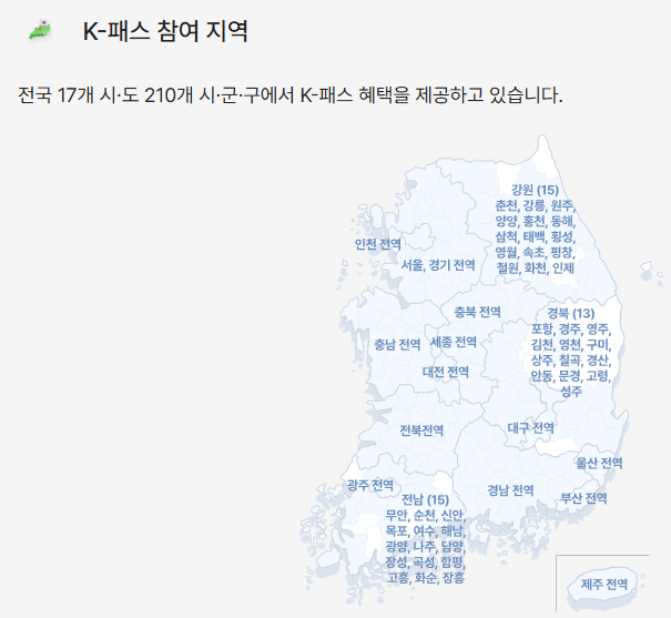- K패스 사업참여하는 지자체 주민